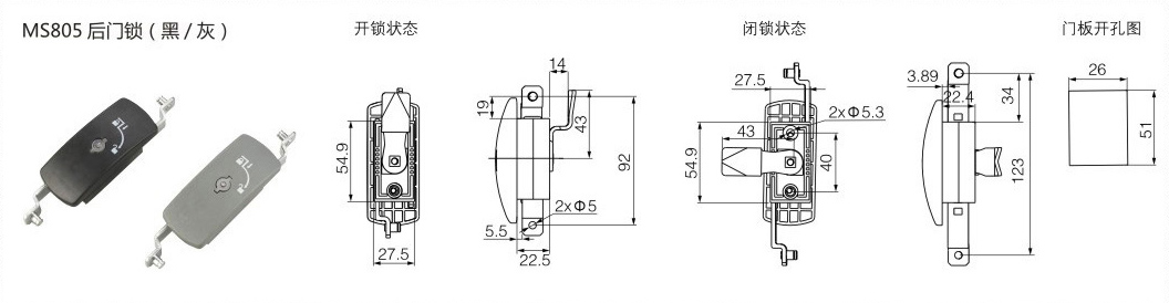 MS805后门锁(黑/灰)