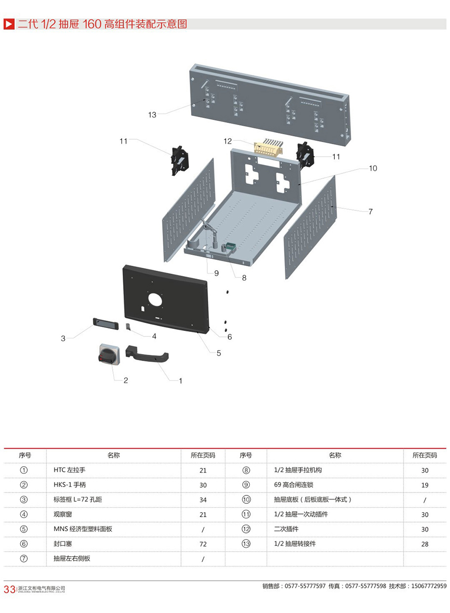 二代柜1/2抽屉200高 组件转配示意图